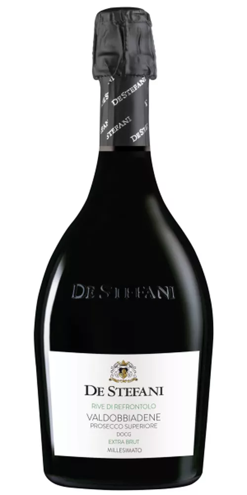 Prosecco "Rive di Refrontolo” je esencí vín Prosecco, s veškerou svojí rafinovaností a elegancí. Vůně, svěžest a jemnost se spojují do čistého a jasného stylu. Významný vinařský magazín Wine Enthusiast zařadil Rive di Refrontolo do svého výběru “TOP 100 wines 2020” na 43. místo s 93 body. Bylo zároveň nejvýše umístěným vínem v kategorii Prosecco. Právem ho tak u De Stefani označují jako “No.1 Prosecco in the world” !!! Vyrábí se 100% z odrůdy Glera, její hrozny se pěstují ve vinařství Colvendrame - jeho vinice leží mezi městečky Conegliano a Valdobbiadene (zapsané v UNESCO World Heritage). Jedná se o srdce apelace Prosecco DOCG. Vinice mají ideální mikroklimatické podmínky a sluneční expozici. Název vína odkazuje na místo původu - “Rive” označuje strmé svahy strání v Refrontolu, které jsou považovány za nejlepší polohy pro pěstování Glery. Výsledkem je Prosecco s jemným, bohatým a vytrvalým perlením v kategorii brut nature - tedy s velmi nízkým obsahem zbytkového cukru (do 3g/l) Má světlou, slámově žlutou barvu s patrnými zelenkavými odlesky. Vůně je bohatá s aroma bílých květů, konvalinky a zelených jablek. Chuť je suchá, harmonická a dlouhá s jemnou slaností v závěru. Víno je ideálním aperitivem, nicméně dobře se kombinuje i s jídlem, nebo se hodí k jakékoliv příležitosti přípitku.