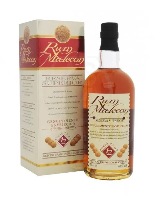 Malecon 12 YO je rum destilovaný z melasy, jež je kombinací vůní tropického ovoce, vanilky a dubu.