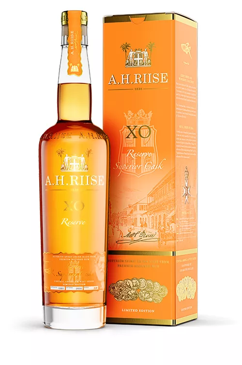 »Výrazně ovocný, sladší rum z produkce legendární značky A. H. Riise vás potěší chutí pomerančů, manga, papáji a vanilky. Vychutnejte si jednu z číslovaných lahví.«