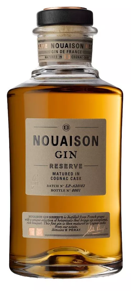 G'Vine Nouaison Gin Reserve je gin zlaté barvy z Francie, kterému bylo dovoleno strávit nějaký čas v sudech po koňaku.